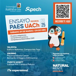 Este sábado 29 de marzo 📆 podrás rendir la prueba de Competencia Lectora y Competencia Matemática (M1) de manera parela en las ciudades de Valdivia, Osorno y Puerto Montt a partir de las 09:00 hrs. 🕜