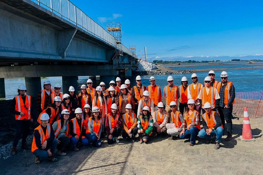 Este año 34 estudiantes viajaron hasta la Región del Bío-Bío acompañados del académico del Instituto de Obras Civiles, Prof. Manuel Lagos y la Directora de Escuela de Ingeniería en Construcción, Prof. Fabiola Ojeda. Junto a ellos, conocieron el Laboratorio de Madera Estructural (LME-INFOR), la construcción de la infraestructura del Puente Industrial y la construcción del nuevo Punte Ferroviario Bío-Bío, además de la empresa Bitumix Sur.