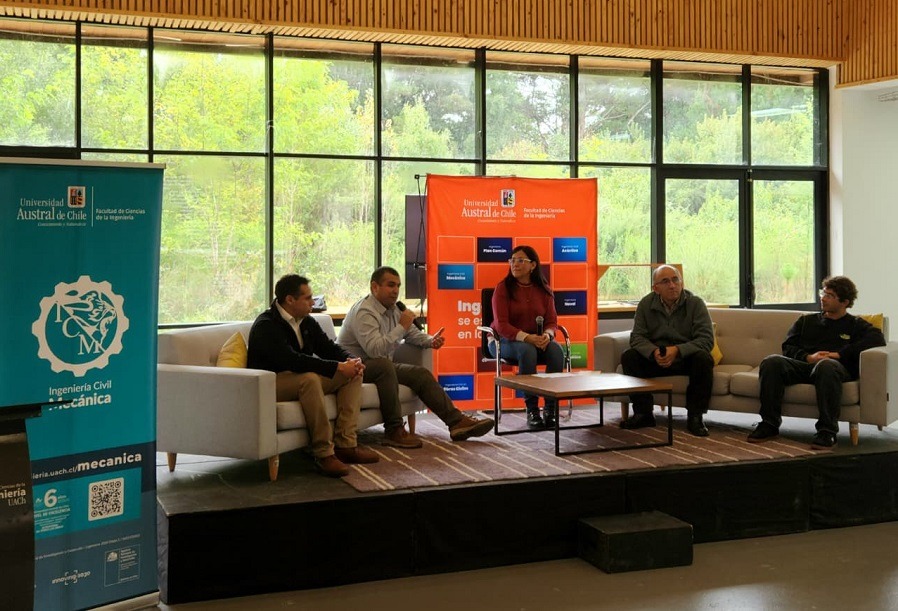 La jornada comenzó con un conversatorio moderado por la directora de Escuela de Ingeniería Civil Mecánica, Dra. Belkys Amador, espacio en el que cuatro invitados con distintas trayectorias laborales que dialogaron acerca de su experiencia universitaria y las diferentes áreas de desempeño laboral en las que se desarrollan actualmente: