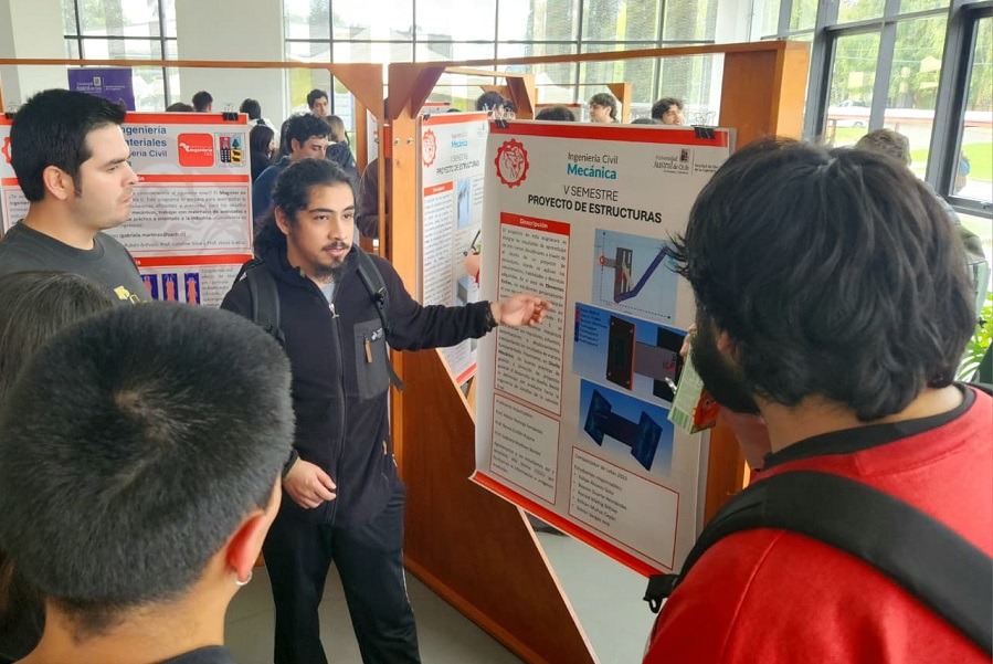 Tras el conversatorio, se realizó una muestra de posters con los proyectos desarrollados bajo la metodología PBL en la sala K del Edificio 14K. En cada estación, pudieron conocer experiencias y prototipos elaborados por grupos de distintos semestres de la carrera, quienes compartieron cómo el aprendizaje práctico y colaborativo impulsa su formación profesional.