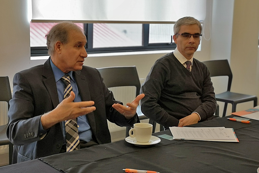 La comitiva estuvo compuesta por los profesores Mansour Tahernezhadi, Decano Asociado Sénior, y Reinaldo Moraga, Decano Adjunto Interino de la Facultad de Ingeniería y Tecnología de dicha casa de estudios, quienes se reunieron con autoridades académicas y representantes de la industria regional.