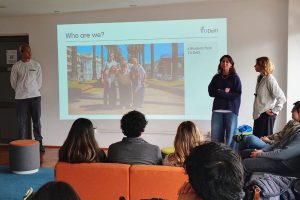 Durante su presentación en la UACh, los estudiantes de la TU Delft respondieron preguntas y compartieron sus opiniones sobre el potencial de la energía undimotriz en el país, fomentando un diálogo abierto y colaborativo con estudiantes de ingeniería naval.