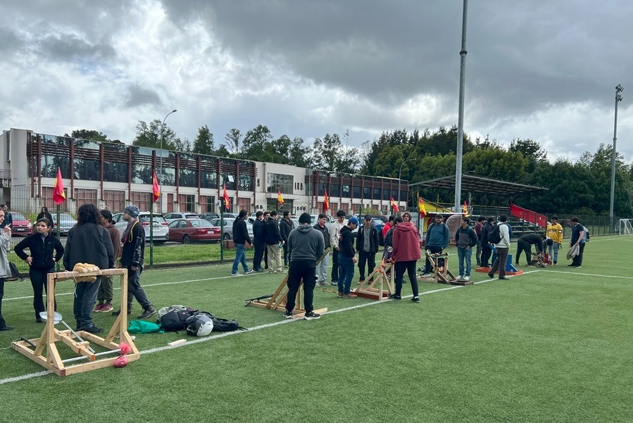 Con el objetivo de generar un mecanismo que sea capaz de impulsar una masa, los estudiantes de primer año de Ingeniería Civil Mecánica de la Facultad de Ciencias de la Ingeniería UACh diseñaron y fabricaron catapultas. La actividad se desarrolló en el marco de su asignatura Taller de Ingeniería 2 que se dicta en el segundo semestre de la carrera.