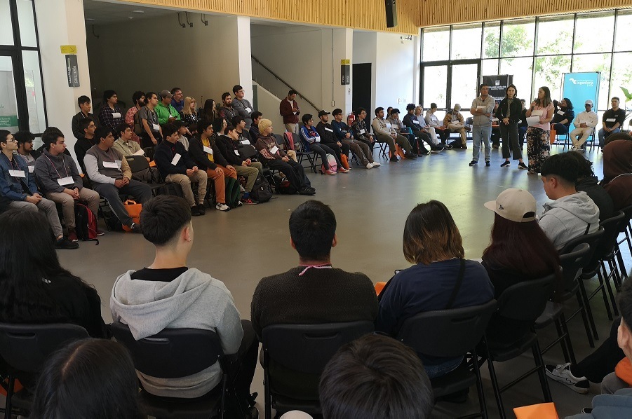 Para dar el vamos a esta ceremonia de bienvenida a las 09:00 horas se presentó Marianela Sanhueza, asistente social de la Dirección de Asuntos Estudiantiles (DAE) de la Facultad de Ciencias de Ingeniería, quien detalló su quehacer y el apoyo que presta dentro del Campus.