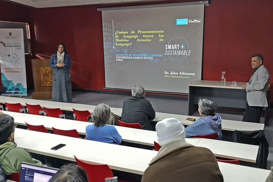 Con la charla magistral ¿Cuánto de procesamiento de lenguaje tienen los modelos actuales de lenguaje?, a cargo del Doctor en Inteligencia Artificial (IA) de la Universidad de Edimburgo (Escocia), John Atkinson, y actual profesor titular de la carrera de Ingeniería Civil Informática de la Universidad Adolfo Ibáñez, se celebró recientemente la inauguración del año académico en el área de Informática de la Facultad de Ciencias de la Ingeniería UACh.