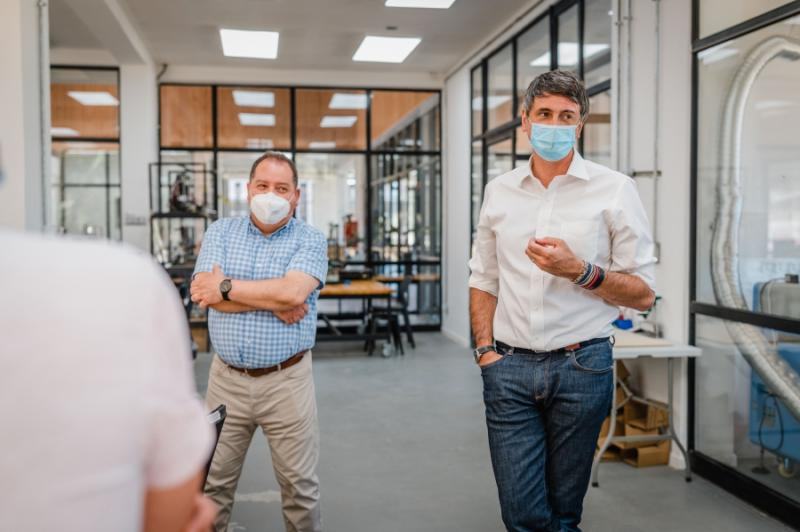 El ministro Andrés Couve junto a la Seremi de Ciencia de la Macrozona Sur, Olga Barbosa, visitaron el Centro de Innovación y Emprendimiento Tecnológico 14K de la Facultad de Ciencias de la Ingeniería UACh para conocer el funcionamiento y las iniciativas que se desarrollan.