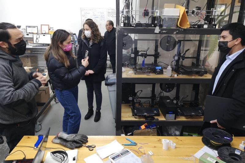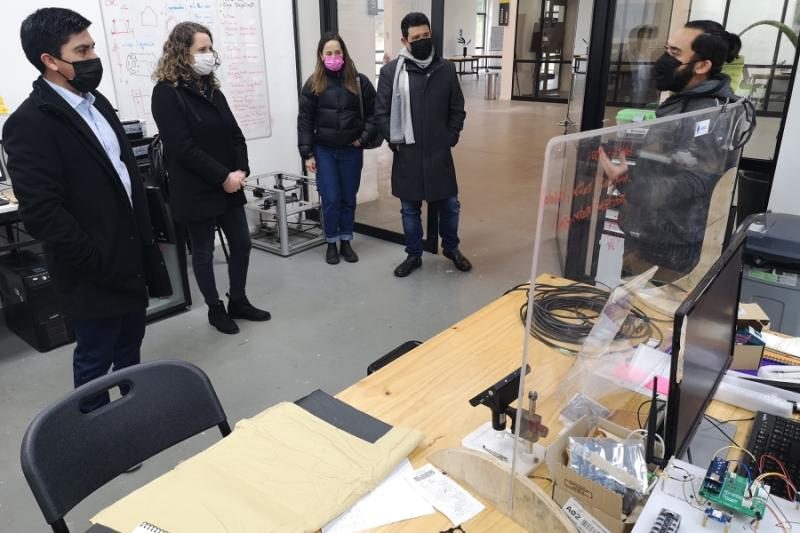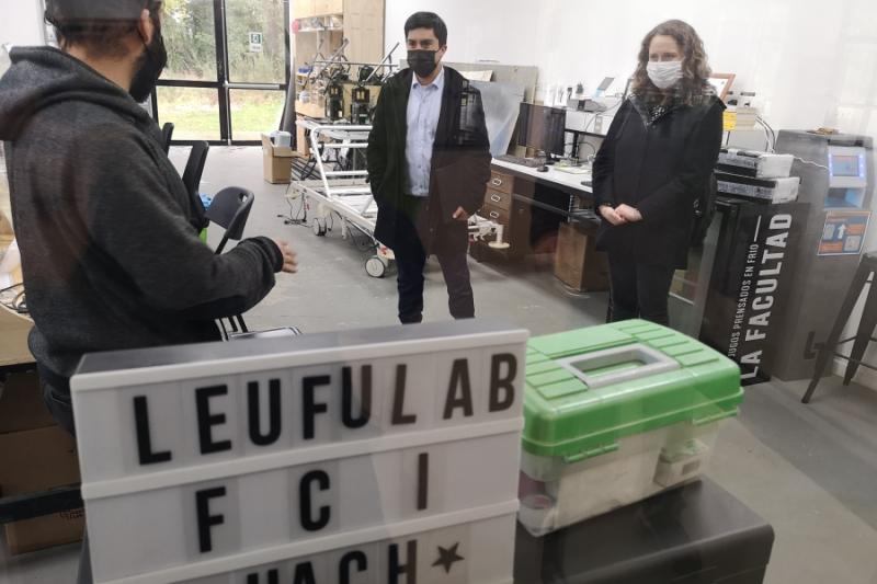 Además de la actividad ante académicos y estudiantes, el egresado Felipe Lara, tuvo la ocasión de recorrer algunas instalaciones del Campus Miraflores, así como el Laboratorio universitario de fabricación digital, LeufüLab, siendo recibido por el Diseñador Industrial y encargado de Laboratorio, David Valencia.
