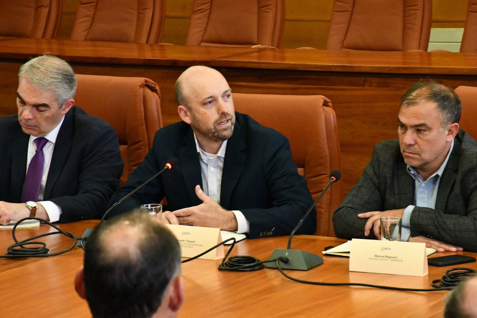 Presidió la mesa Elizabeth Zapata, directora de Desarrollo Tecnológico de Corfo, junto al Comandante en Jefe de la Armada, Almirante Fernando Cabrera y el vicepresidente ejecutivo de Corfo, José Miguel Benavente.